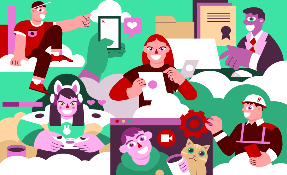 Together with the Eat Creative team, we created a unique illustration style for Rakuten’s Rakuten Today blog. The illustrations had to turn complex technology-related concepts into easy-to-understand visuals while staying true to Rakuten’s brand values.